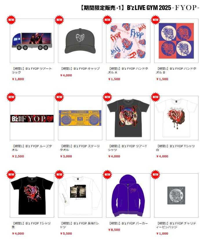 《 B'z LIVE-GYM 2025 -FYOP- ツアーグッズ一部商品 期間限定販売スケジュール 》