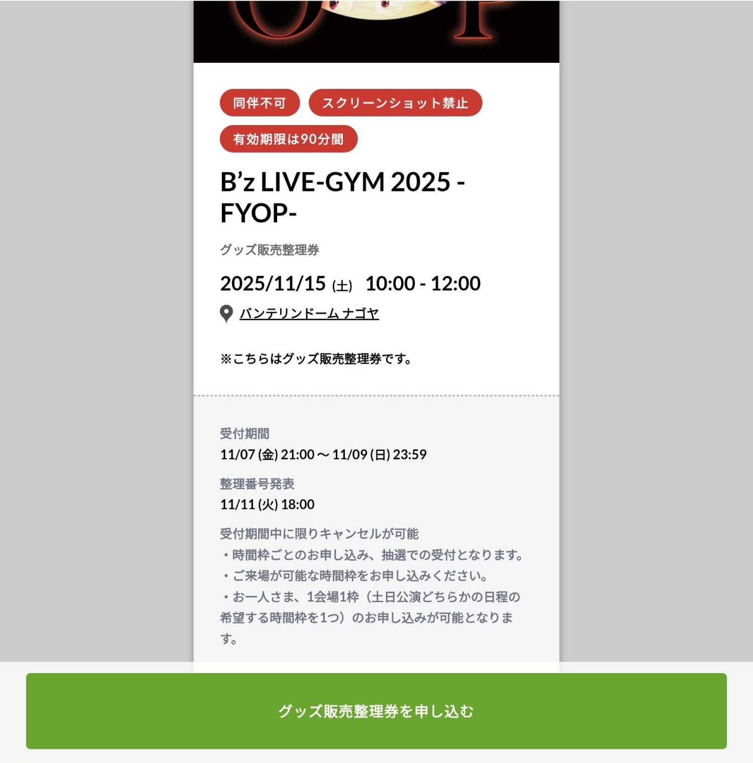 ※グッズ売場入場は整理券当選の本人のみ (同伴者不可)
