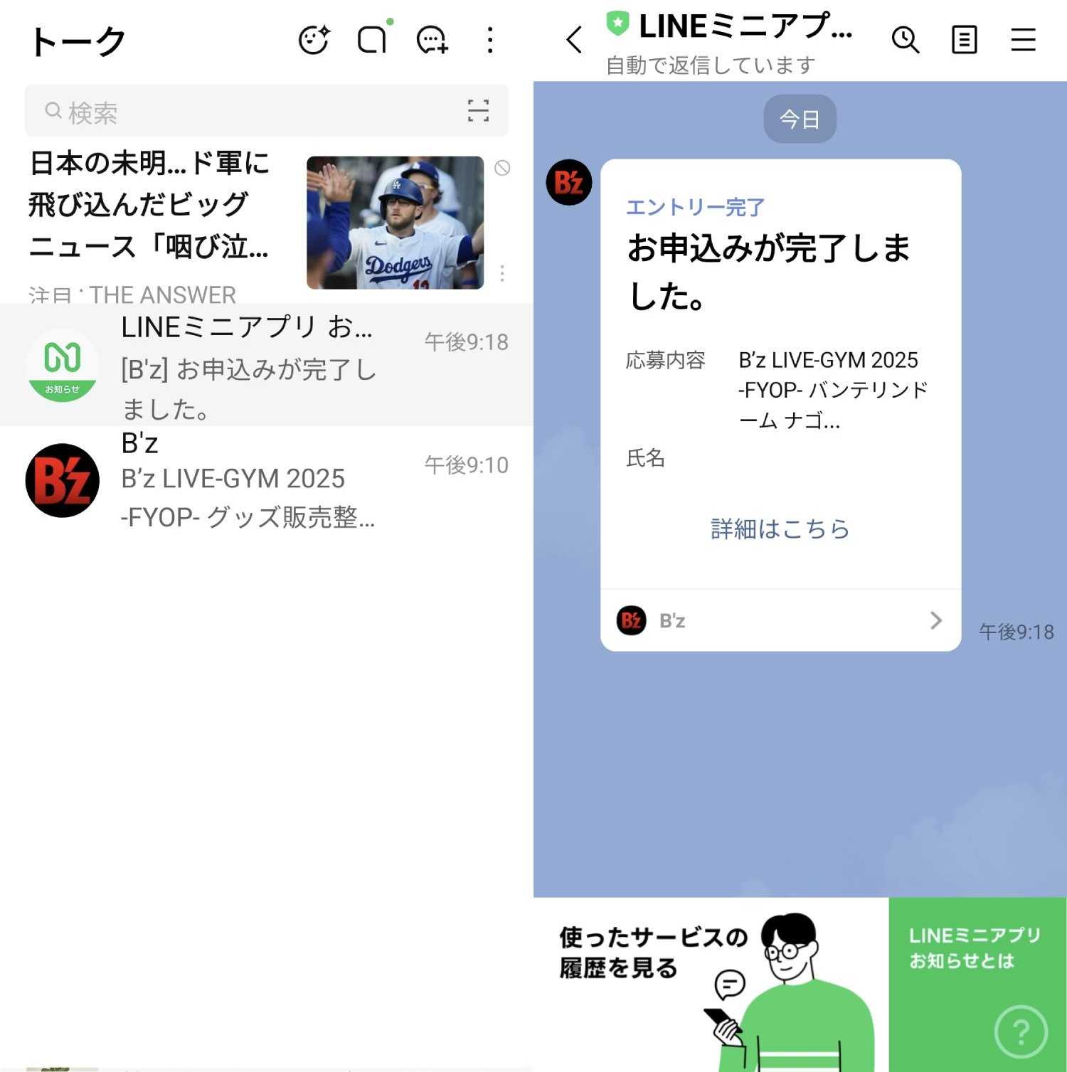 ※結果発表時間以降に【 LINEミニアプリ お知らせ 】に当落通知が届きます。