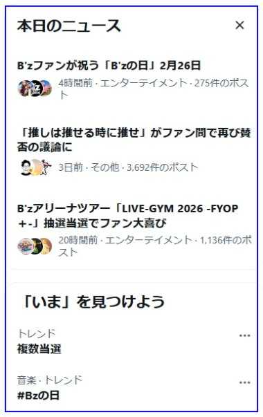B'zの日、2月26日にファン熱狂の記念投稿が広がる 本日のニュース